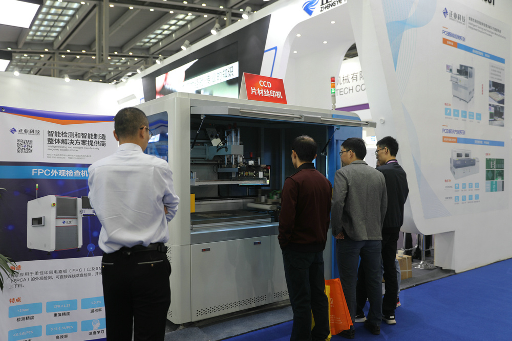 展位現(xiàn)場展示了字符噴印機、自動線寬測量儀、CCD片材絲印機和PCB/FPC材料,觀展人士可以近距離參觀產(chǎn)品,看設(shè)備如何自動化、智能化操作。