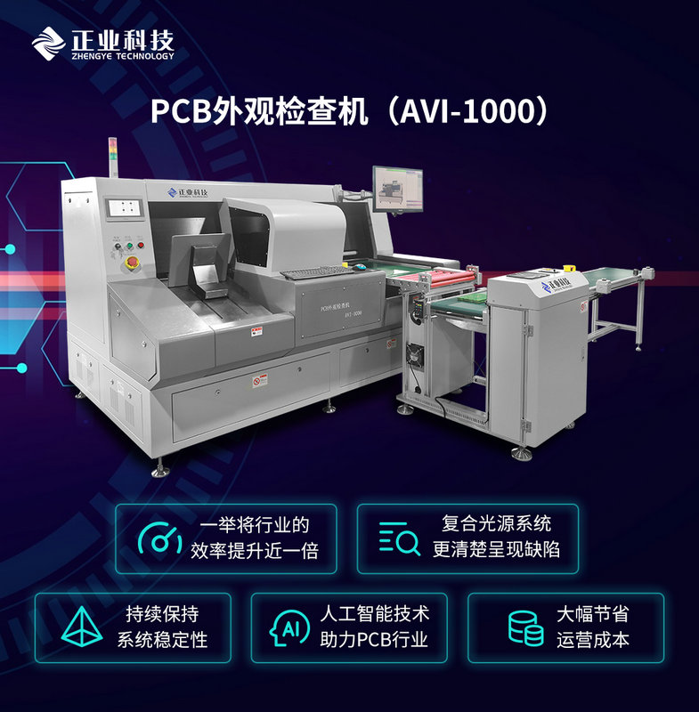 正業科技AVI-1000系列PCB外觀檢查機,檢測能力尤其出眾,適用于PCB出廠前的外觀檢查,對其缺陷、瑕疵進行檢測,自動上料,出料自動水平堆疊,自動運輸到VRS工位。